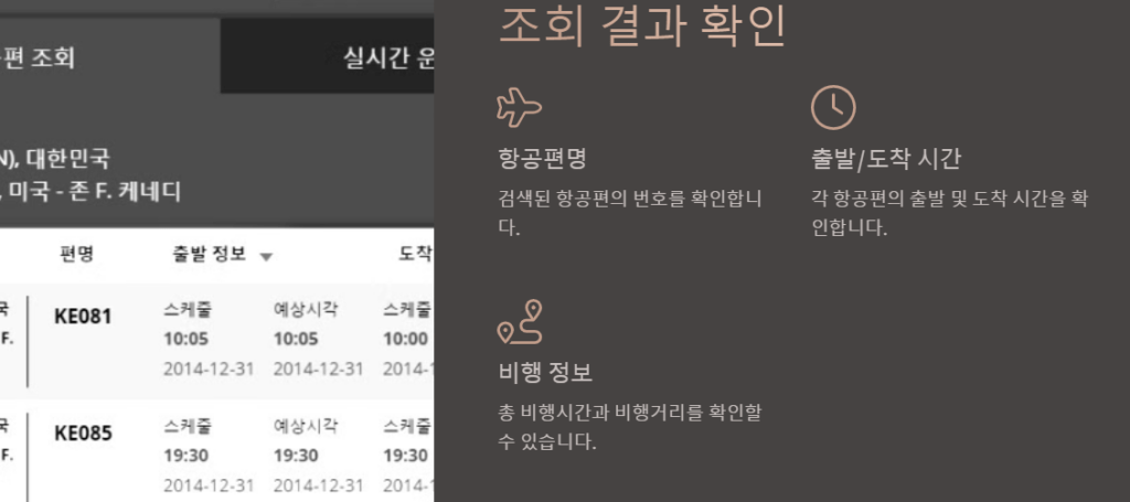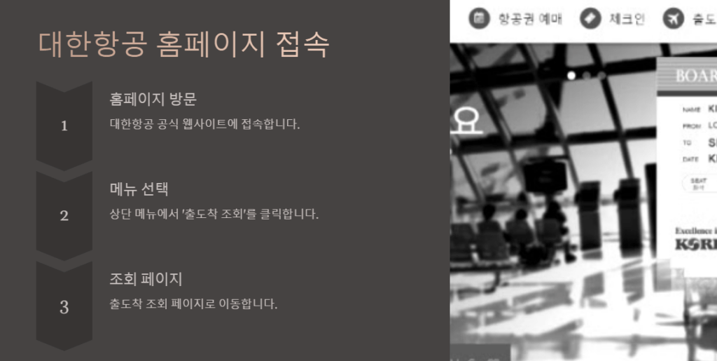 대한항공 출도착 조회 방법 상세 가이드