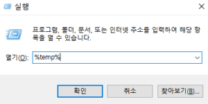 - Windows키 + R을 눌러 실행 창을 열고 %temp%를 입력하여 확인 버튼을 눌러주세요.