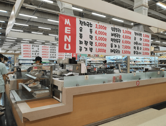 홈플러스 면목점의 푸드코트는 다양한 메뉴를 제공하며, 고객들이 쇼핑 중간에 휴식을 취하면서 식사를 즐길 수 있도록 설계되었습니다.