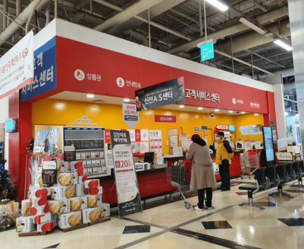 분실물 관리, 제품 환불 및 교환 서비스, 주차권 확인 등 고객의 편의를 돕기 위한 종합적인 서비스를 제공합니다. 고객센터는 매장 입구와 가까운 위치에 있어 쉽게 접근할 수 있습니다.